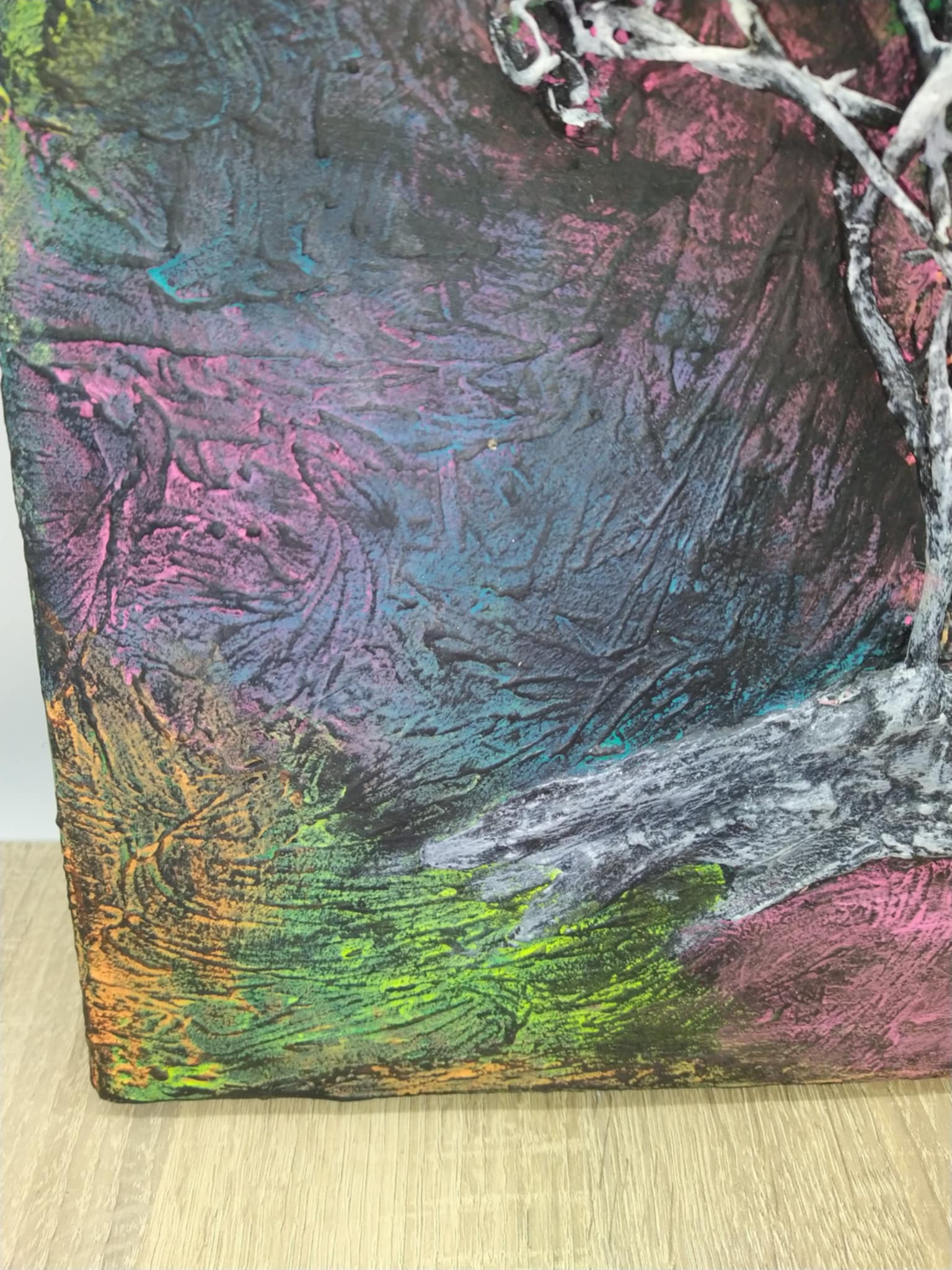 tableau en relief rĂ©alisĂ© Ă l'acrylique sur toile en coton avec cadre en boisÂ
